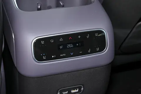 第二排采用了 2+2 的独立座椅设计,这也是该车型的一大特色。独立座椅不仅能为乘客提供更舒适的乘坐感受,还能提升中间通道的通透性。体验者坐入第二排后,腿部空间余量约为一拳半,头部空间约为一拳,整体乘坐感受比较舒适。更值得一提的是,第二排座椅支持前后和左右移动,还能够进行靠背角度调节,灵活性表现不错。家长可以根据孩子的需求调整座椅位置,方便照顾后排的孩子;如果需要放置儿童安全座椅,也能通过调节座椅找到最合适的安装位置,实用性拉满。