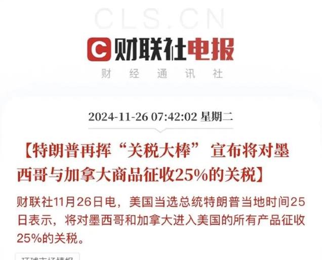 11月25日,特朗普开启自己的关税第一战,宣布将对3个国家加征关税。