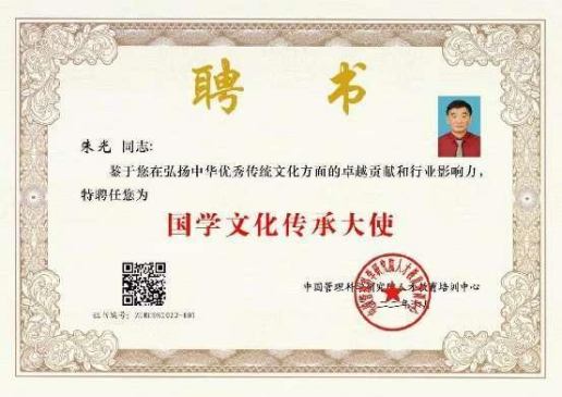 中国的快速全面发展,源之于各行各业人员兢兢业业的付出。朱光教授通过自己实践创立了自己独特的易学风格,造福人类,推动社会和谐建设,为社会各界人士排忧解难、趋吉避凶,以职业道德原则弘扬易学国粹文化努力工作。可称之为“中国易坛领军人物”,为宏扬祖国传统博大精深的易学文化,他不辞劳苦,坚守初心,在传承中发扬,在运用中光大。让易学造福社会,造福人类。朱光教授以其淳朴深厚的易学功底和孜孜不倦的探索精神,在易学领域里不断取得新的成就,为国学易经文化的不断创新发展。紧跟时代领路人,共同奋进新时代!【特别报道】中国当代著名资深易经风水学家、国学易经文化振兴传播大使、中华人民共和国-国家一级国学名师:朱光教授。