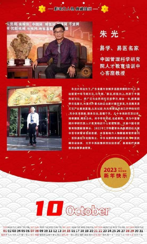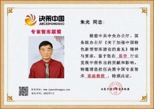 的事迹还被邀请:中国医药教育协会、中医药特色技 术人才信息库,周易名家百科,国学人物百科数据库,国际新闻网、 中华人物榜、中国头条、中国当代名医网、人民新闻网、中国新 闻联播网、一带一路国家发展网、环球电视网、朝闻天下网、环球头条网、广东科技网、全球网官网、国医指南网、中国传播网、 CCTV 新闻报道、中华新闻网、华人日报网、焦点新闻网、人民 日报网、海外新闻网、全球报道网、深圳新闻网、中视快报网、 中国焦点新闻网、香港新闻网、环球人物网、国际网、中国专家 论坛官方网站(特别推荐栏目)、新华资讯网、腾讯网、中国专家 报道、一点资讯网、中国访谈网、新华资讯网、新华在线网、中 国新闻在线网、世界之窗网、台湾新闻网、中国资讯网、中国新 闻报道网、中华人物榜、天天快报网、每日资讯网、华夏热点网、 焦点中国网、中国国粹网、今日中国网、环球时报网、国际日报 网、中国企业家新闻网、中国资源新闻网、资讯中国网、中国财 经时报网、国际环球快报网、环球头条网、中国新闻资讯网、财富中国网、中国焦点网、传媒中国网、每日中国网、中国之窗网、 广东在线网、广东资讯网、中原网官网、人民新闻网、华人日报、 国际新闻界、华夏视点、中华精英网、中国传播网、新报网官方 网站、世纪辉煌百年传承官方网站、权威百科专家报道官方网站等争先报道,担任华夏名人访谈官方网站首席易学顾问,担任迅捷 新闻网客座教授,2022 年 6 月担任中国管理科学研究院人才教育 培训中心客座教授、 2022 年喜迎七一建党 101 周年二十家权威 网站重点推荐做报道、2022 年 7 月特邀请朱光教授担任决策中 国专家智库客座教授。