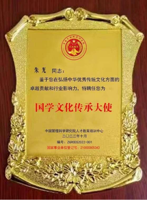 2022年10月荣誉担任中国管理科学研究院国学文化传承大使