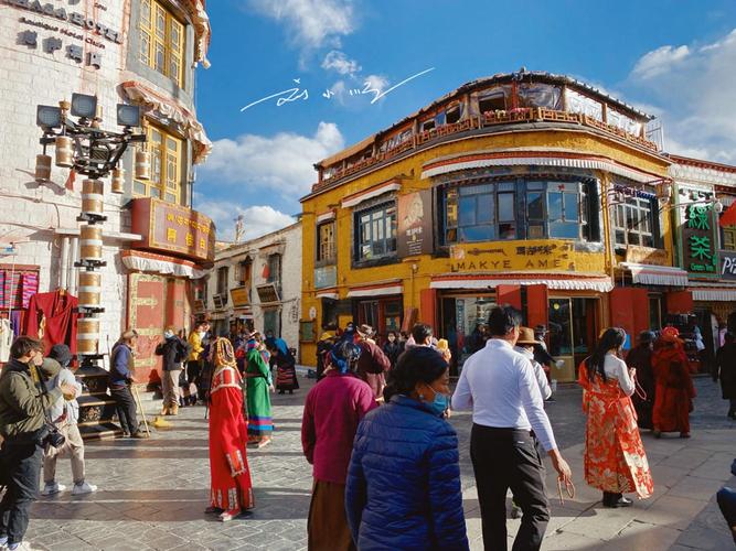 在拉萨八廓街,每天都有信徒手持转经筒,沿着顺时针方向绕街而行,他们的脚步坚定,眼神虔诚,六字真言“嗡嘛呢叭咪吽”的声音,在街巷里久久回荡;