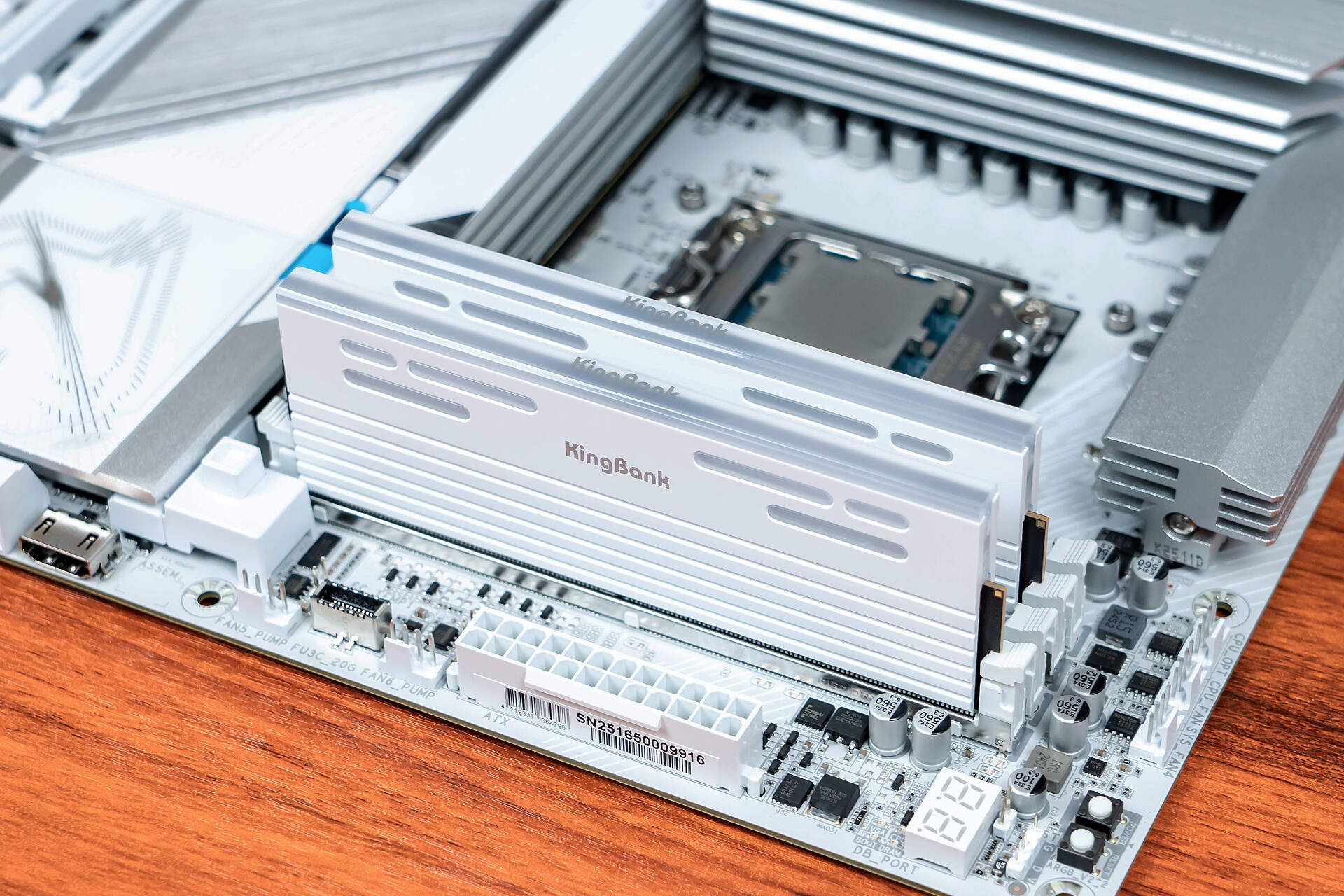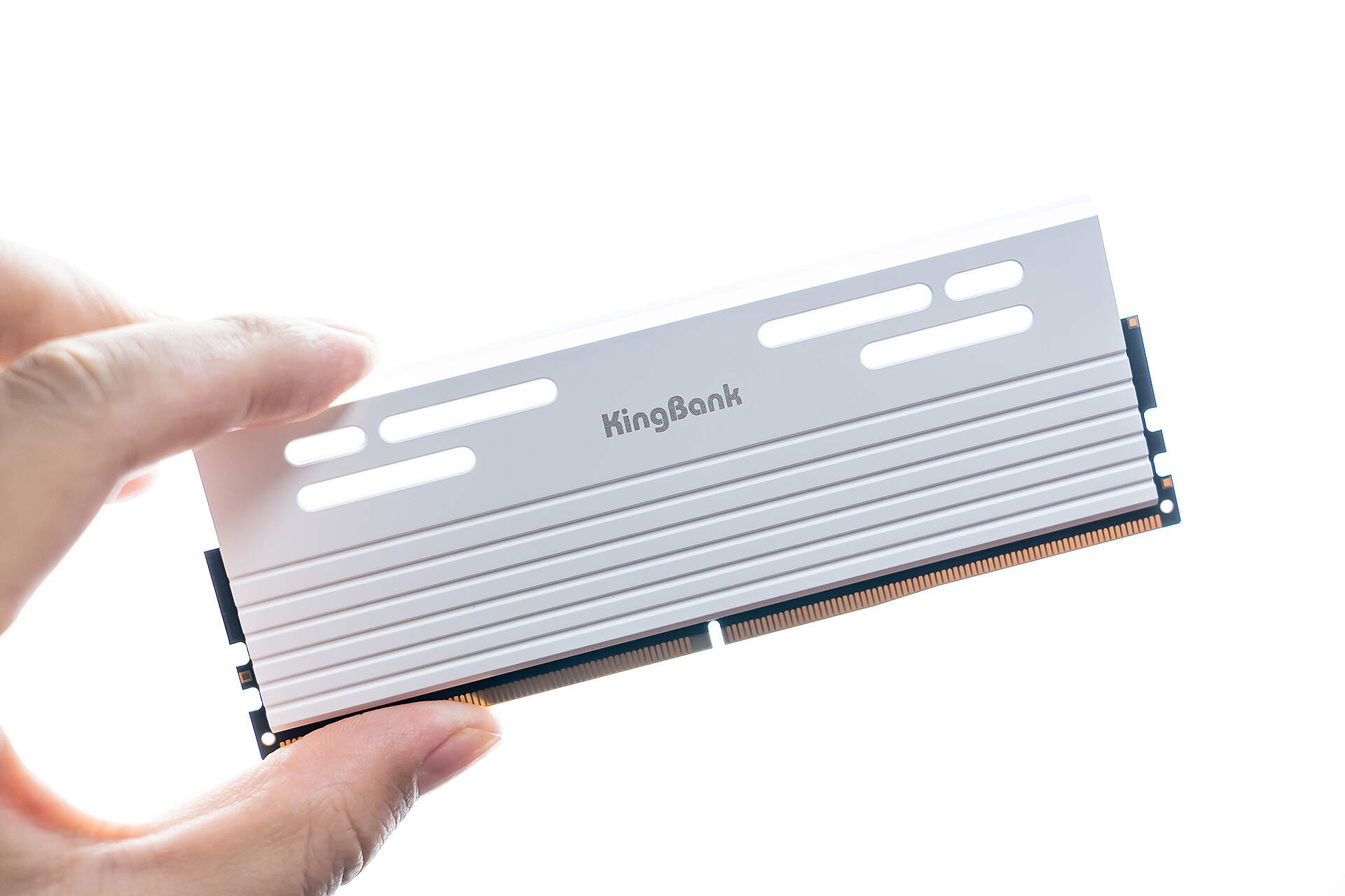 星刃系列是金百达高端系内存,外型精致、优雅,采用白色金属散热马甲,表面有多段凹槽风道设计,不仅能提供出色的散热性能,更赋予了它沉甸甸的质感和高级感。