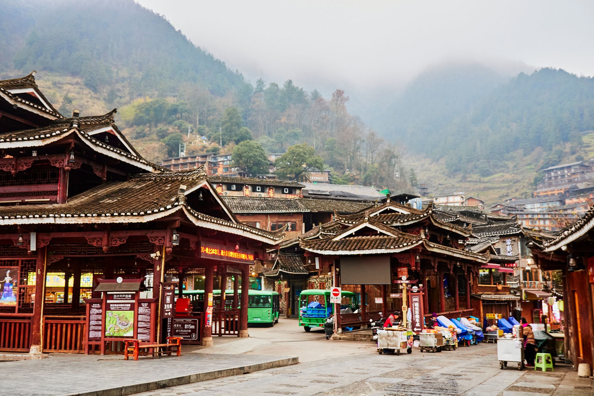 西江千户苗寨独立又特别,绿树中的吊脚楼伴随着山间缭绕的雾气,流露出神秘安静的气质,仿佛跟每一个游客的来处都不在一个空间维度里。这里有古韵气质,有苗家风情,也有热闹喧嚣的烟火气。