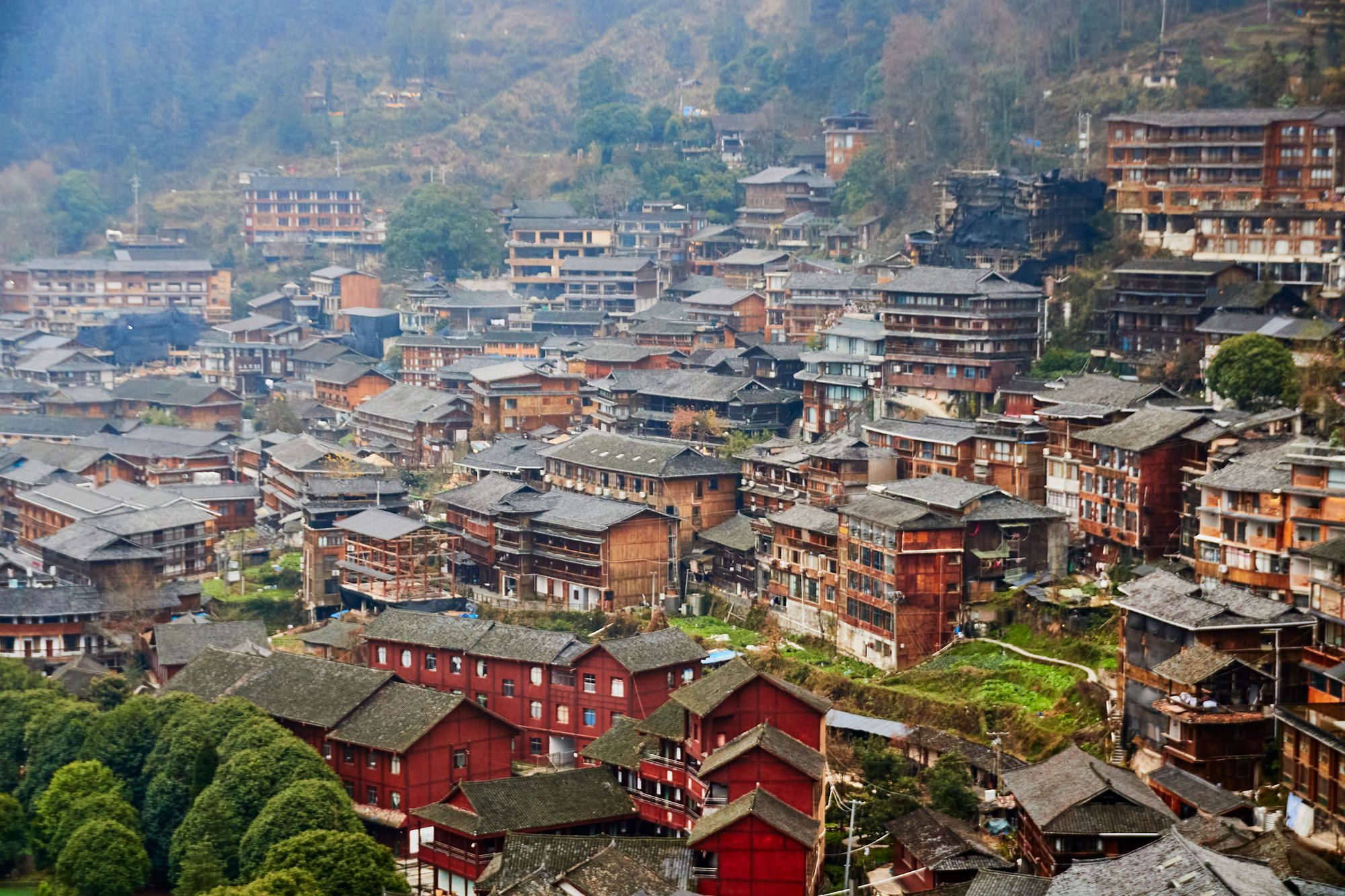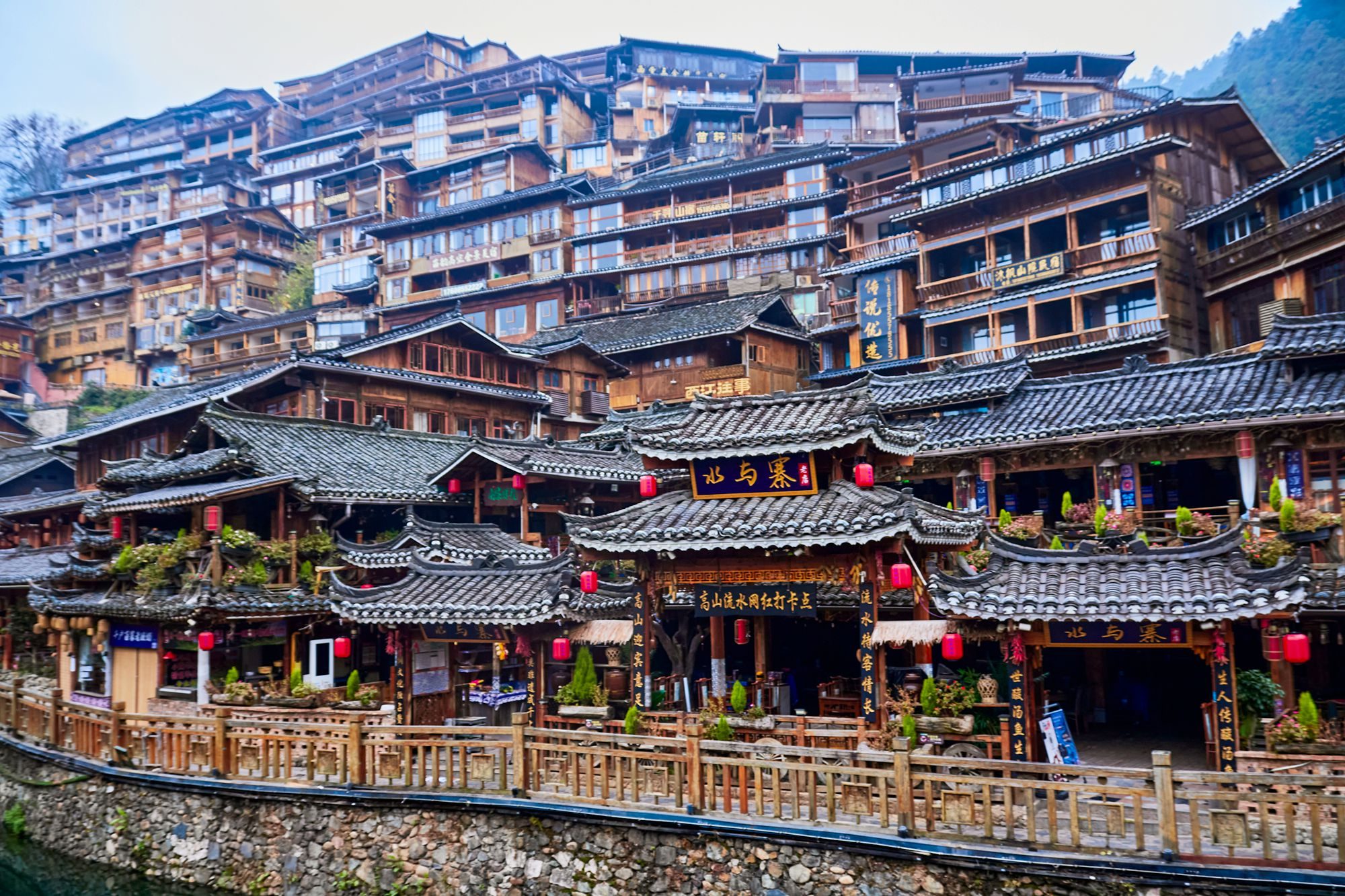 在贵州的山水中,藏着世界上最大的苗族聚居村寨——西江千户苗寨,这里由十多个自然村寨连片组成,一座座吊脚楼依山而建,从山脚到山上连绵成片,形成恢宏气势。