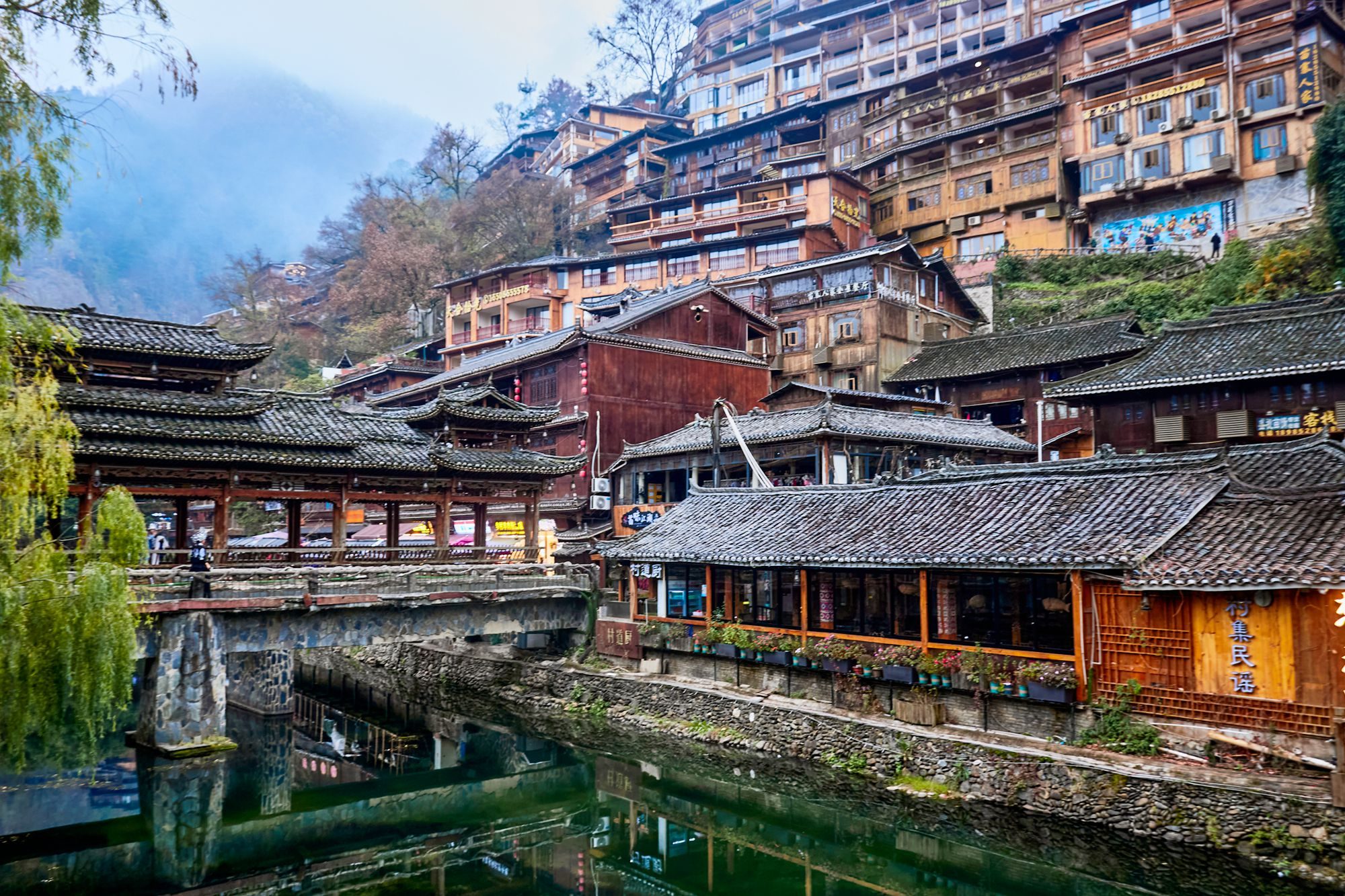 碧绿的白水河穿寨而过,造型古朴的桥、鳞次栉比的寨、层层叠叠的田,雾霭轻飘,一起营造出不属于尘世的世外桃源即时感。