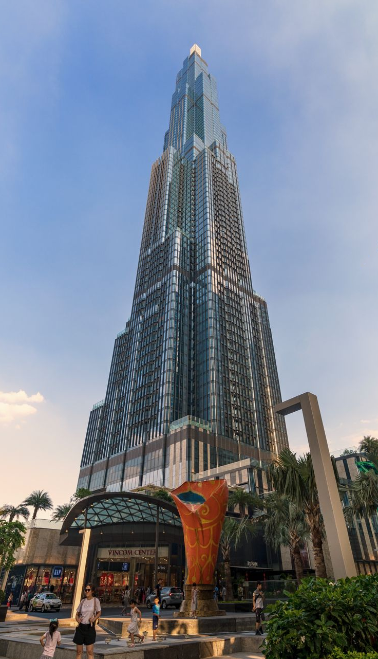 该大楼总建筑面积达241,000平方米,高461米,地上81层、地下3层,功能涵盖商业、住宅、酒店及观光。项目由越南最大私营企业Vingroup集团投资开发,耗资约14亿美元。