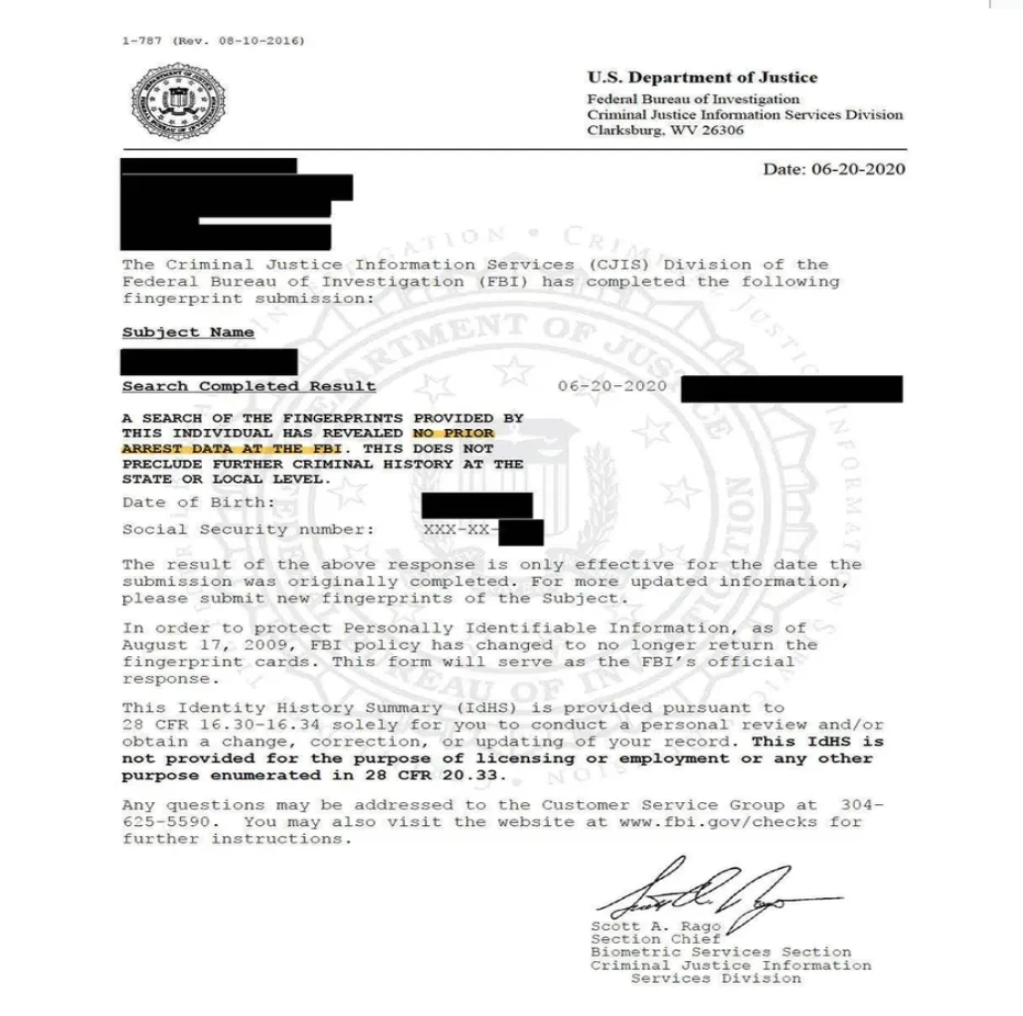 • 真伪与验证:FBI 结果无公开二维码,通常通过 Apostille/领事认证确认来源;核对姓名、出生日期等身份信息。