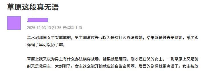 更离谱的是,剧中充斥着诸多悬浮情节,比如男主在炮火连天的战场穿行毫发无伤,女主陷入沼泽脱困后能立刻骑马救人,被俘后还被敌军王妃善待认作干女儿,主角光环重到让观众直呼“智商受辱”。