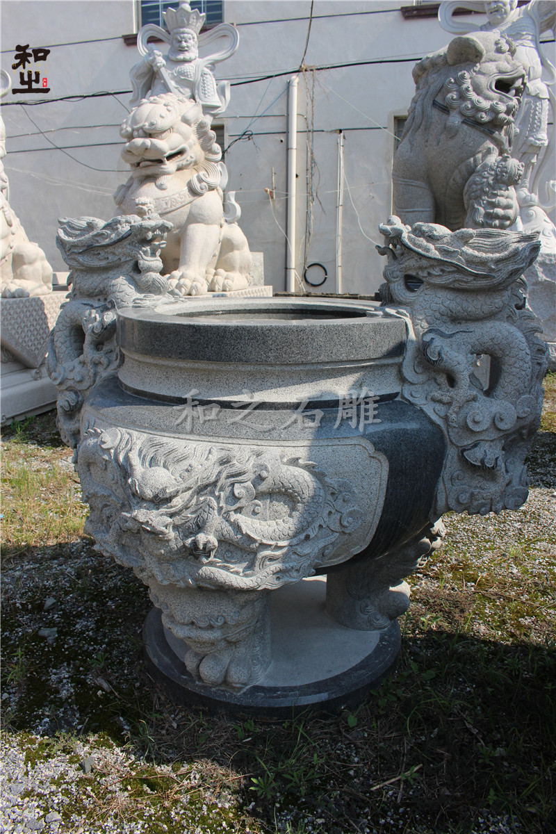 石香炉被广泛运用于寺庙、祠堂、祖厝等各种场所,香炉在选择石材也是很重要,从石雕香炉图片大全来看,石雕香炉的制作石材一般都是颜色比较深的花岗岩石材、青石,青石本身颜色呈现出青色,较为古朴,可以展现出整个香炉的庄重氛围,为佛教寺庙增添了几分威严,所以一般寺庙中大部分都是以青石为主。