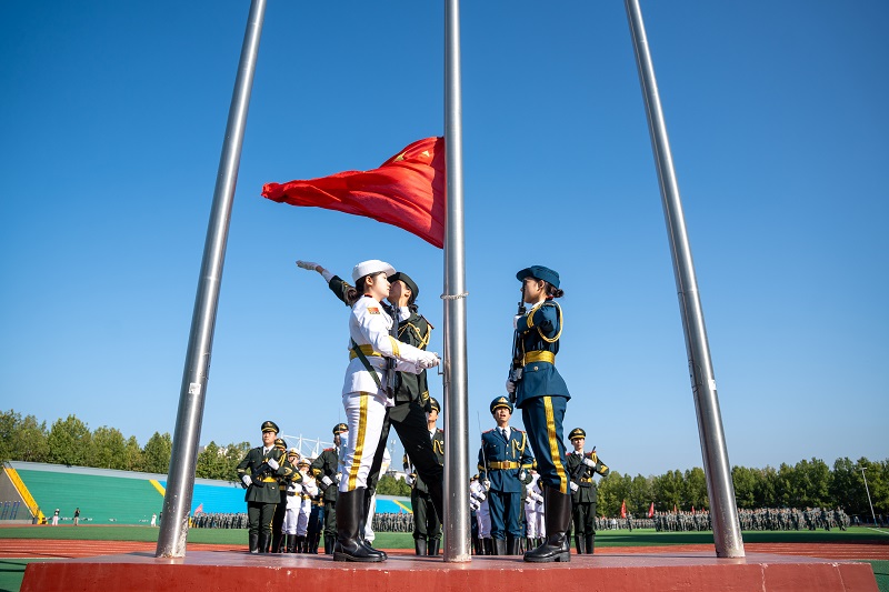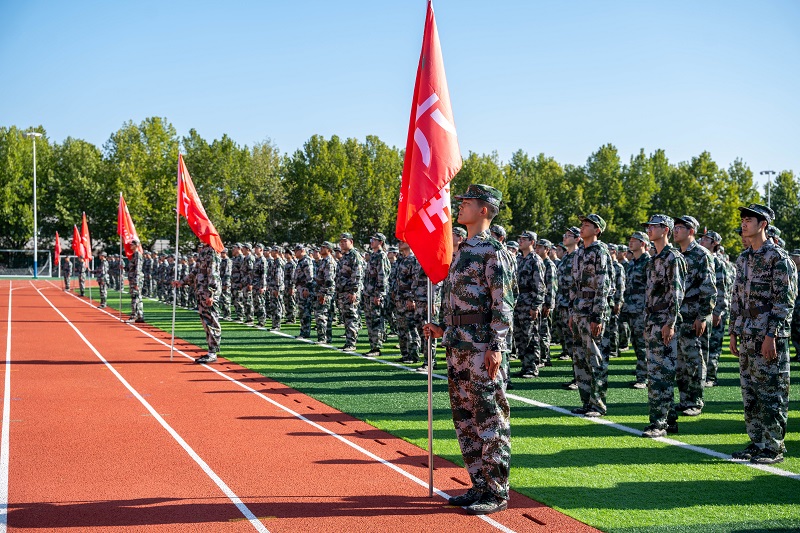 在雄壮的国歌声中,军训动员大会拉开序幕。伴随着五星红旗的冉冉升起,全体师生肃立,奏唱《中华人民共和国国歌》,表达对祖国的无限热爱和崇高敬意。