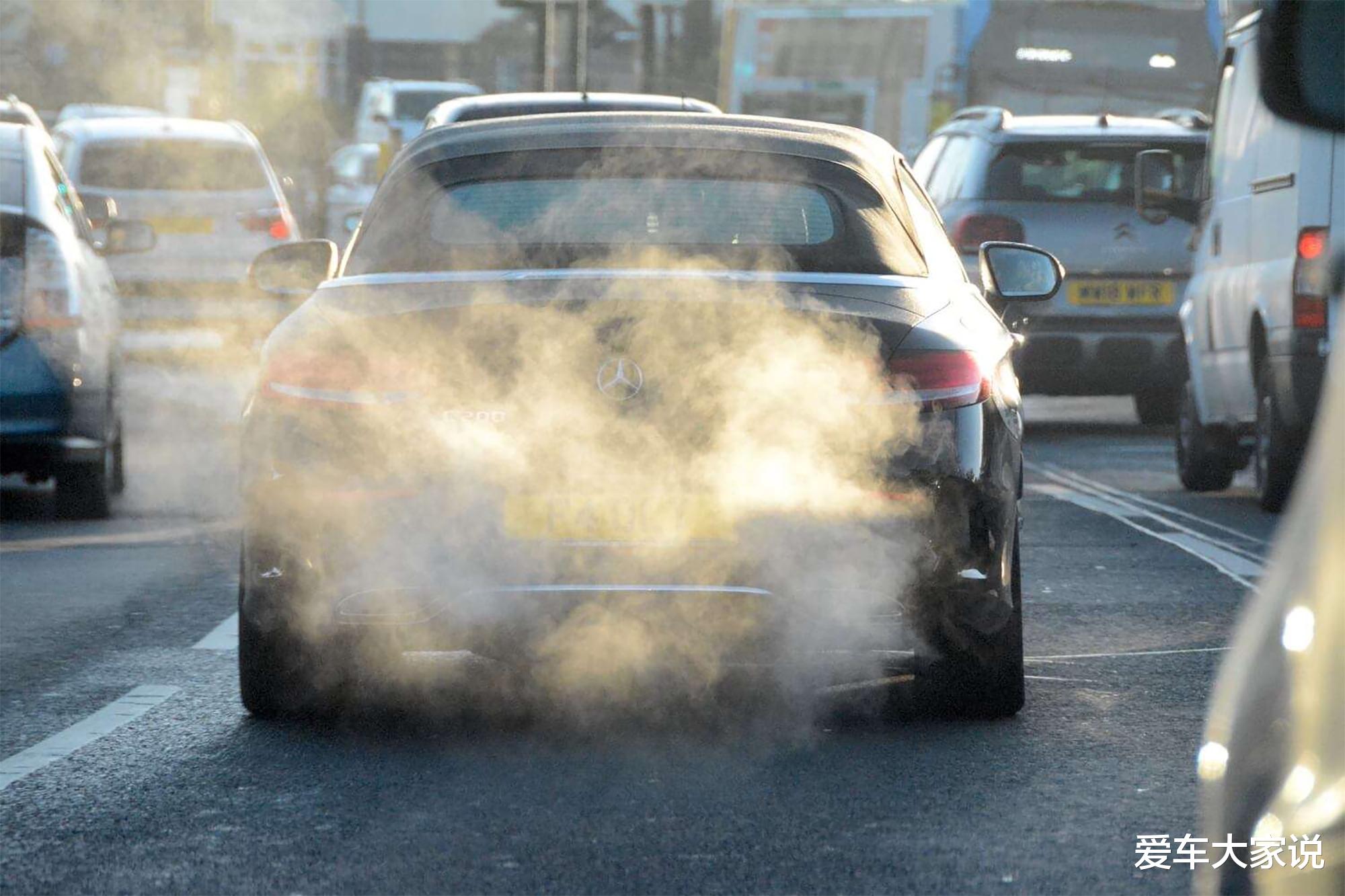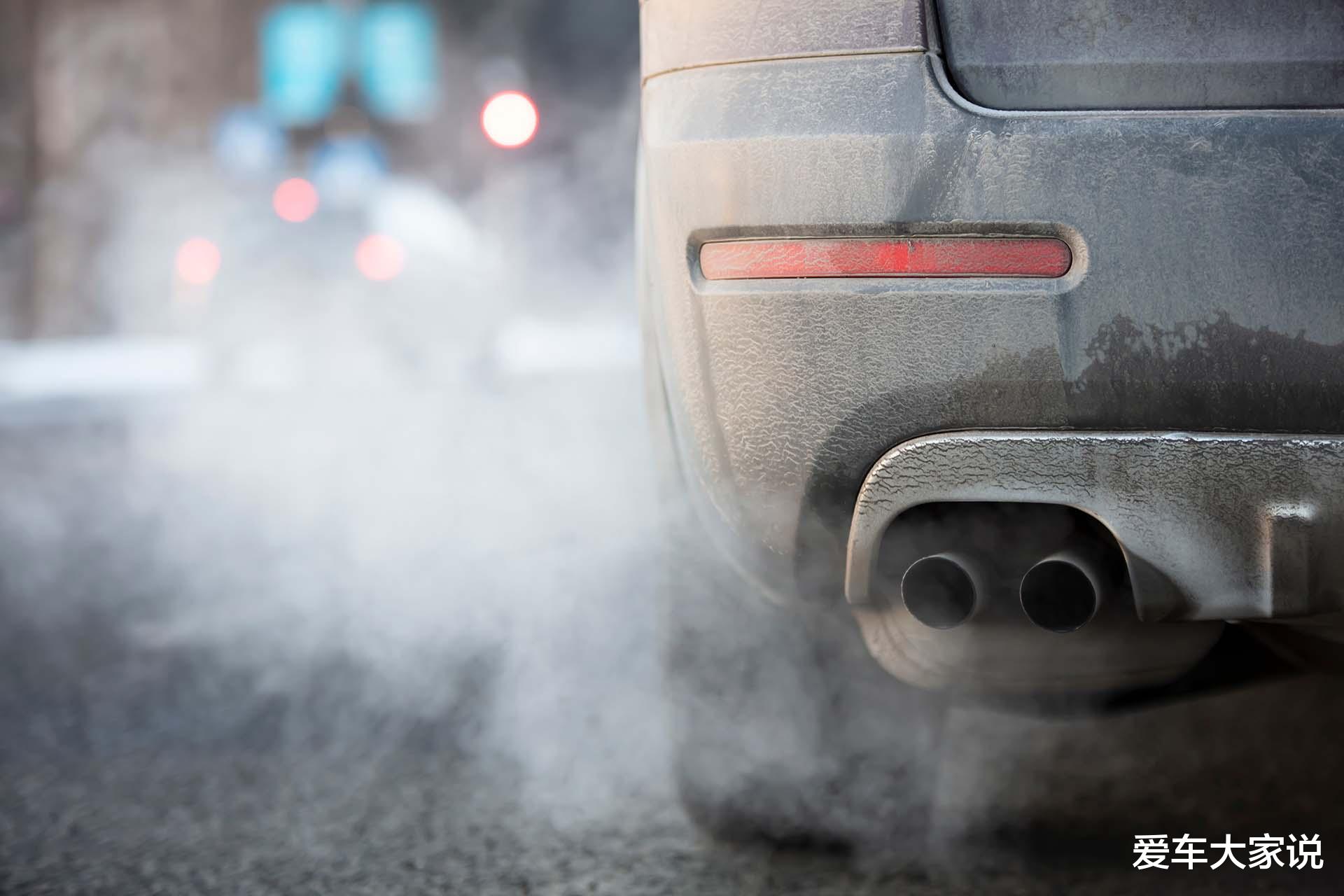 还有一些车行驶中没白烟,但停车等红灯时有白烟,这大都是静止后没有气流辅助打散尾气,导致水蒸气在原地聚集,降温后凝结,最终形成白烟。