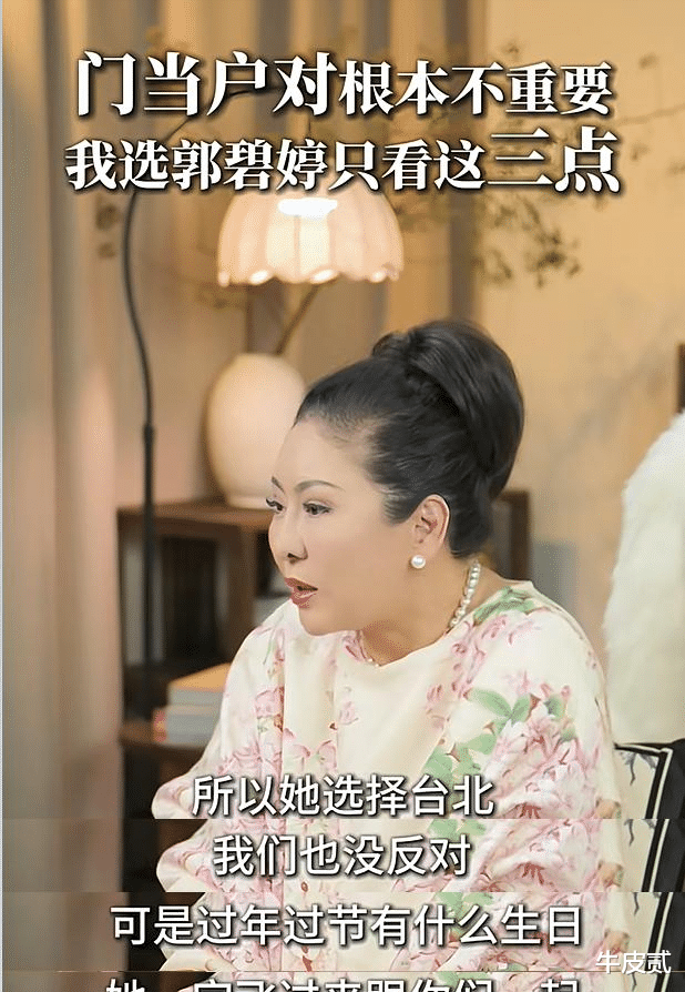 向太清晰阐述了择媳标准,她并不看重门当户对,并列出三点选中郭碧婷的原因。