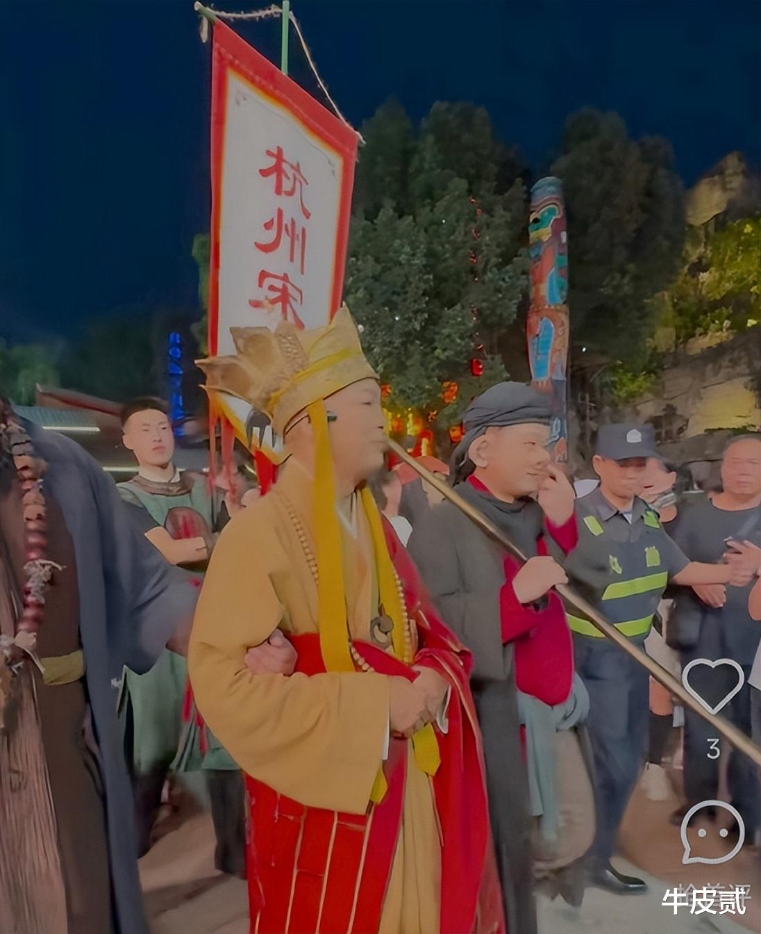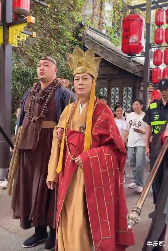 可能因经济压力,现年79岁、曾四次患癌的罗家英近日在杭州某景区穿着唐僧戏服表演。