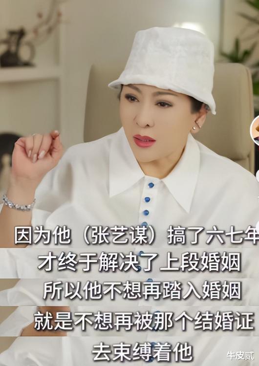 她透露,在拍摄《摇啊摇,摇到外婆桥》时,巩俐多次向张艺谋提出结婚,但张艺谋认为婚姻并非必要。
