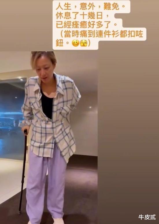 受伤初期她无法站立,休养十多天后才能坐轮椅或拄拐行动。