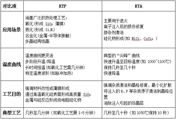 RTA(快速热退火)和 RTP(快速热处理)是半导体制造中常用的热处理工艺技术,两者核心原理相同,但在应用场景、温度曲线、工艺目的上存在差异。