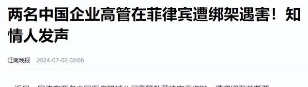 在2024年6月,两名中国医疗器械公司高管前往菲律宾工作时,也不幸遭遇了绑架事件,甚至在最后没能被顺利救出,而是被绑匪撕票,种种行为简直罄竹难书。