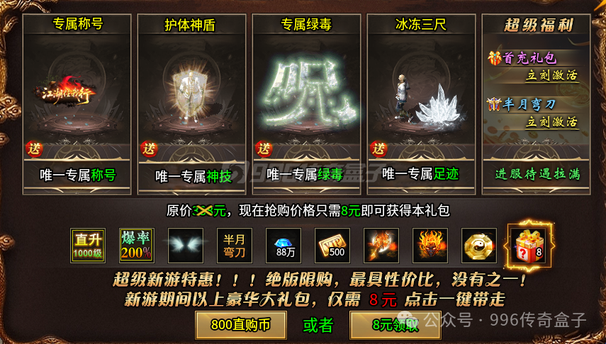 185大极品微变单职业,开局就送海量福利,首次礼包、新手助力和顶级赞助会员直接拉满。本服主流货币是金币,一切靠打怪获取,玩法进阶、装备提升、神器晋级都可以免费获得。