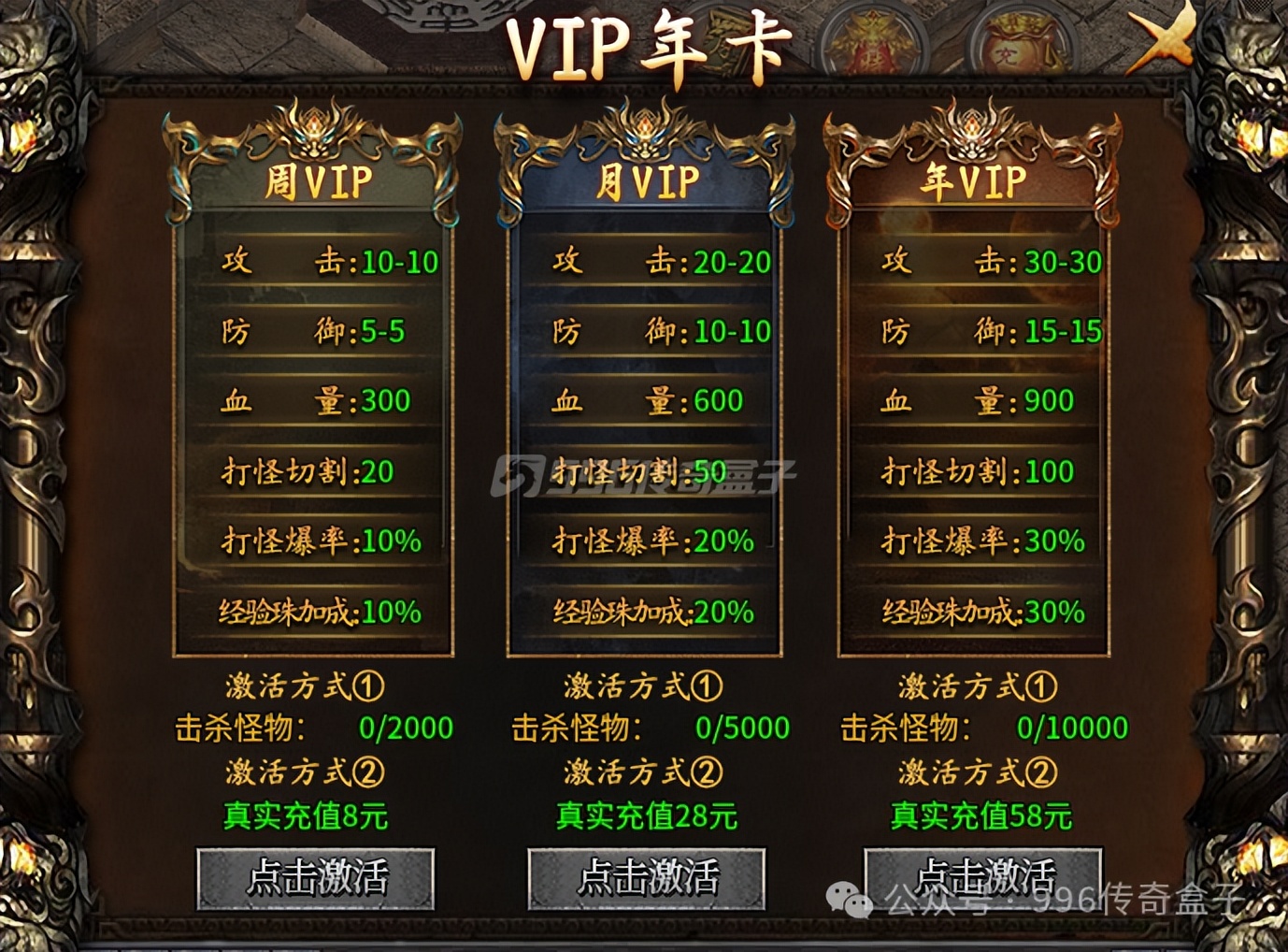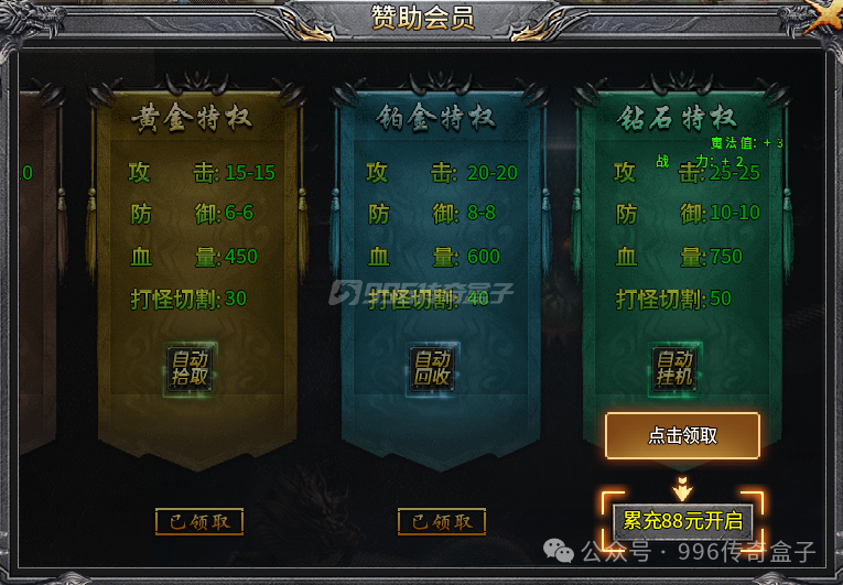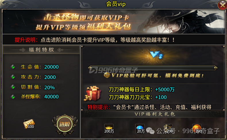 会员VIP也可以通过任务、每日杀怪福利、活动等方式直接免费白嫖,每次VIP的等级提升不仅有大量属性提升,还有巨额福利可以领取。