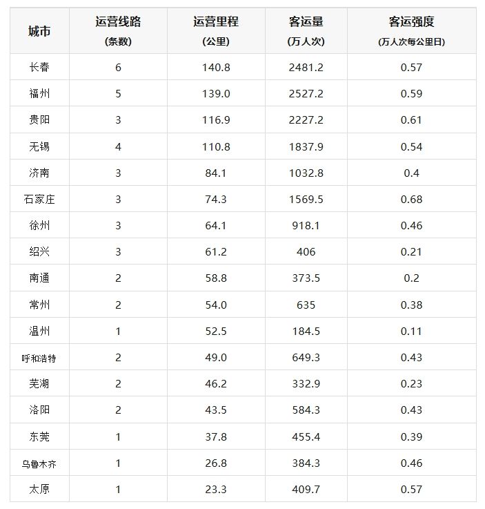 除了以上10个城市,另外还有17个城市地铁客流强度没有达到0.7的合格线,由于篇幅过长,下面只简单列举,不作过多赘述。