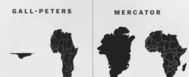 高尔-彼得斯投影法和墨卡托投影中格陵兰岛和非洲大陆对比图自:知乎@鹿川堂