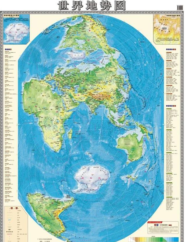 除了上面说到的不同投影下的世界地图外,在2013年9月郝晓光博士主编的竖版《世界地势图》发行。与传统世界地图不同,竖版世界地图不是沿着经线、而是沿北纬15度的纬线把地球“横着切开”。这虽然也会造成部分区域变形,也没严格遵循“上北下南”的惯常原则,却大大减少了南北极地区的变形。