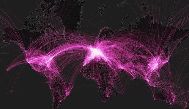 世界航线图数据来自GeoHey公共数据平台如果想要在平原图上展示出陆地正确的大小形状,可以试试高尔·彼得斯投影法。