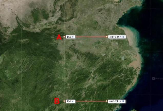 图自:标准地图服务系统但有没有想过一个问题:世界地图也会“欺骗”你;比如:地图上看似同样长的两条线段(图上长度8厘米),但实际上A比B却短约37公里。
