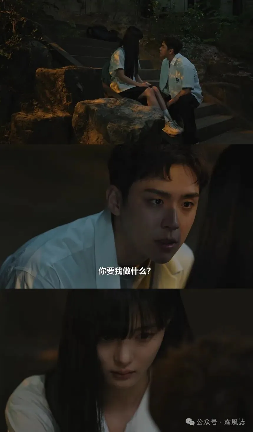 尹俊瑞本性善良单纯,可以为了雅珍顶罪、但坚守不能杀人的底线;而金在伍早已经越线、无所畏惧了。可以说他拥有跟她一样的原生家庭底色,甚至他们先后完成了弑父、脱离了原生家庭的枷锁。有相似伤痛的两个人重新相遇后,关系会有怎样的转变?