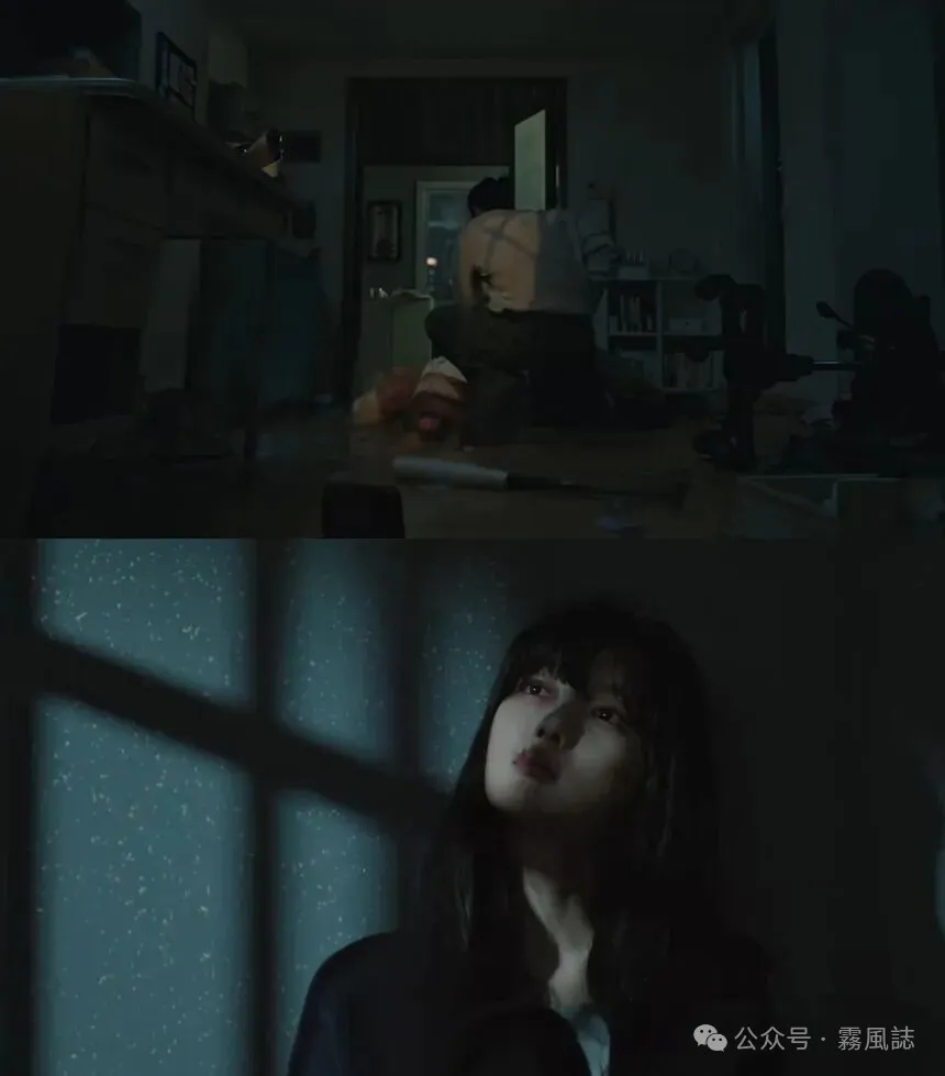 摄影还强调了作为全剧题眼的X,X究竟是什么?第一个X是妈妈,后来是继母、圣希、爸爸,简单理解X是那些欺负雅珍的坏人,她要对抗或除掉的人。但镜头语言中的X似乎暗含着更多的意味。