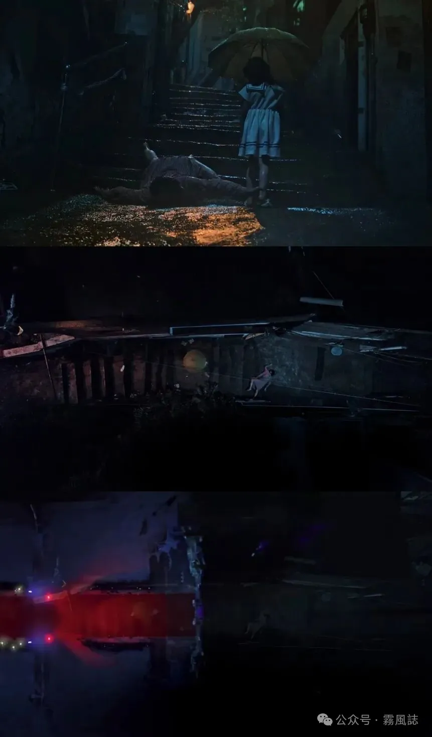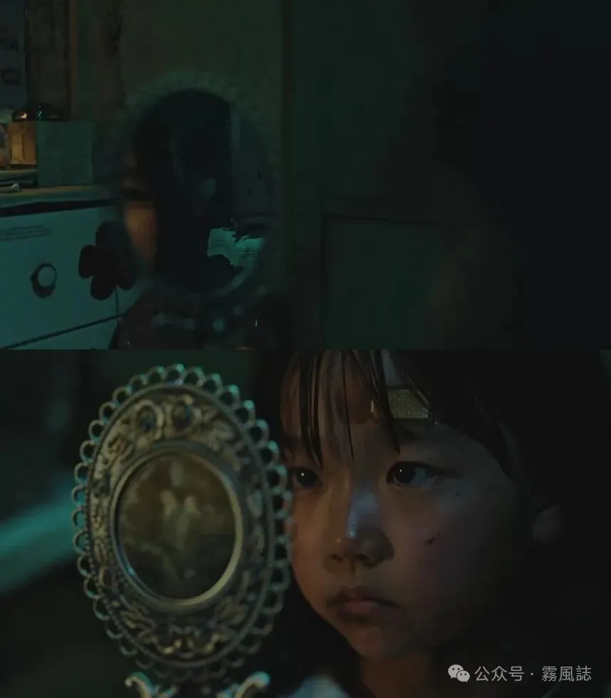 童年场景中还有一个有趣的意象——镜子,雅珍通过镜子的反射看爸爸的谋杀,看着镜子的她表情冷漠,镜中反射的是别人的罪行,同时也投射着她真实的恶意。