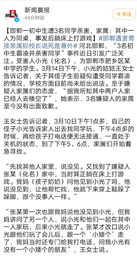 结语邯郸三名初中生谋杀同学埋尸案的审理结果,引发了社会对于未成年人刑事责任年龄的热议,也让我们更加深入地认识到未成年人犯罪问题的复杂性和严峻性。