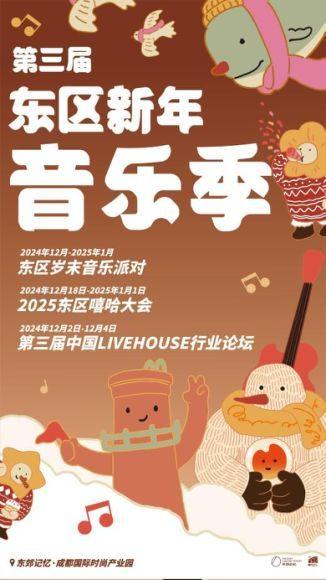 目前,2025第三届东区新年音乐季也如约而至。12月4日,为期三天的2024第三届 LIVEHOUSE行业论坛在东郊记忆东区超现场圆满落幕。作为三年来嘉宾阵容最豪华、规模最大的一届 LIVEHOUSE论坛 ,吸引了全国100余家知名Live House品牌及负责人、50 余位行业资深嘉宾 、40 余个全国知名音乐品牌/音乐主理人、20 余家音乐垂类行业、7支展演乐队,共计 300余位嘉宾共聚一堂,回顾行业变迁、 共谋发展新篇章,一同见证这一全国 LIVEHOUSE行业的年度高光时刻。作为2025东区新年音乐季的启幕活动LIVEHOUSE行业论坛为音乐季铺垫了绚丽的序章,音乐季相关活动将持续至 2025年1月初,期间,东郊记忆将呈现各 类音乐展演活动,从激情四溢的音乐派 对到嘻哈文化的蓬勃活力,为市民游客提供丰富的文化观演选择,展现成都作为 国际音乐之都的独特魅力。