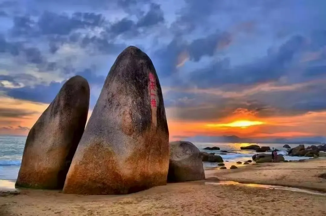 天涯海角的巨石立在海边,看一场日落把天空染成橘子海,连时光都慢了下来;