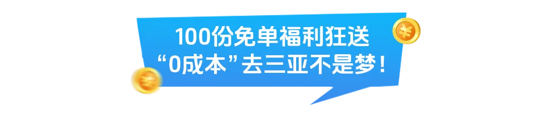 抽100个“天选之子”:送国内往返机票(西安出发也能抽!)、免费住三亚湾皇冠假日度假酒店、免费打卡红色娘子军景区、免费吃嗲嗲椰子鸡……相当于三亚包吃包住包玩,这波 “躺赢” 福利,手慢无!
