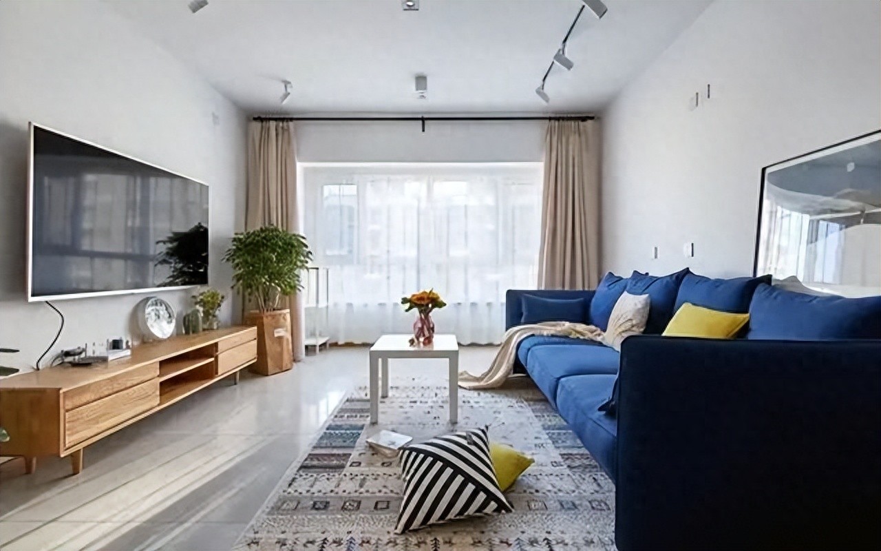 若想客厅有文艺感又不复杂,墙壁装修可走 “极简路线”: