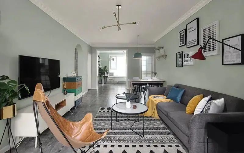 6. 软装风格:北欧几何 + 马卡龙 + 原木,混搭出丰富感这种风格的客厅很受欢迎,核心在于 “潮流元素混搭”: