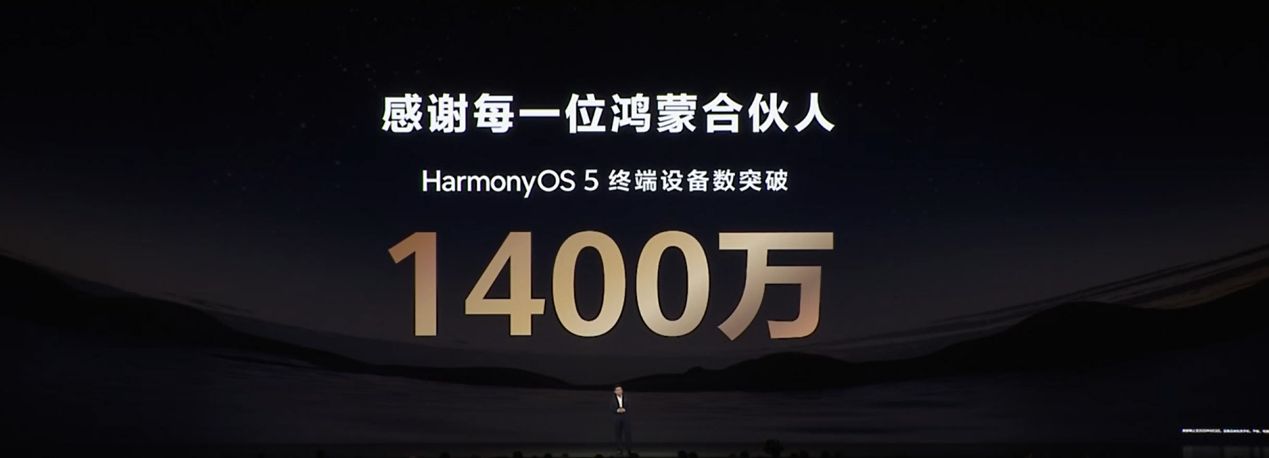 近日华为发布会公布了最新的鸿蒙生态进展:HarmonyOS 5终端设备数已突破1400万。
