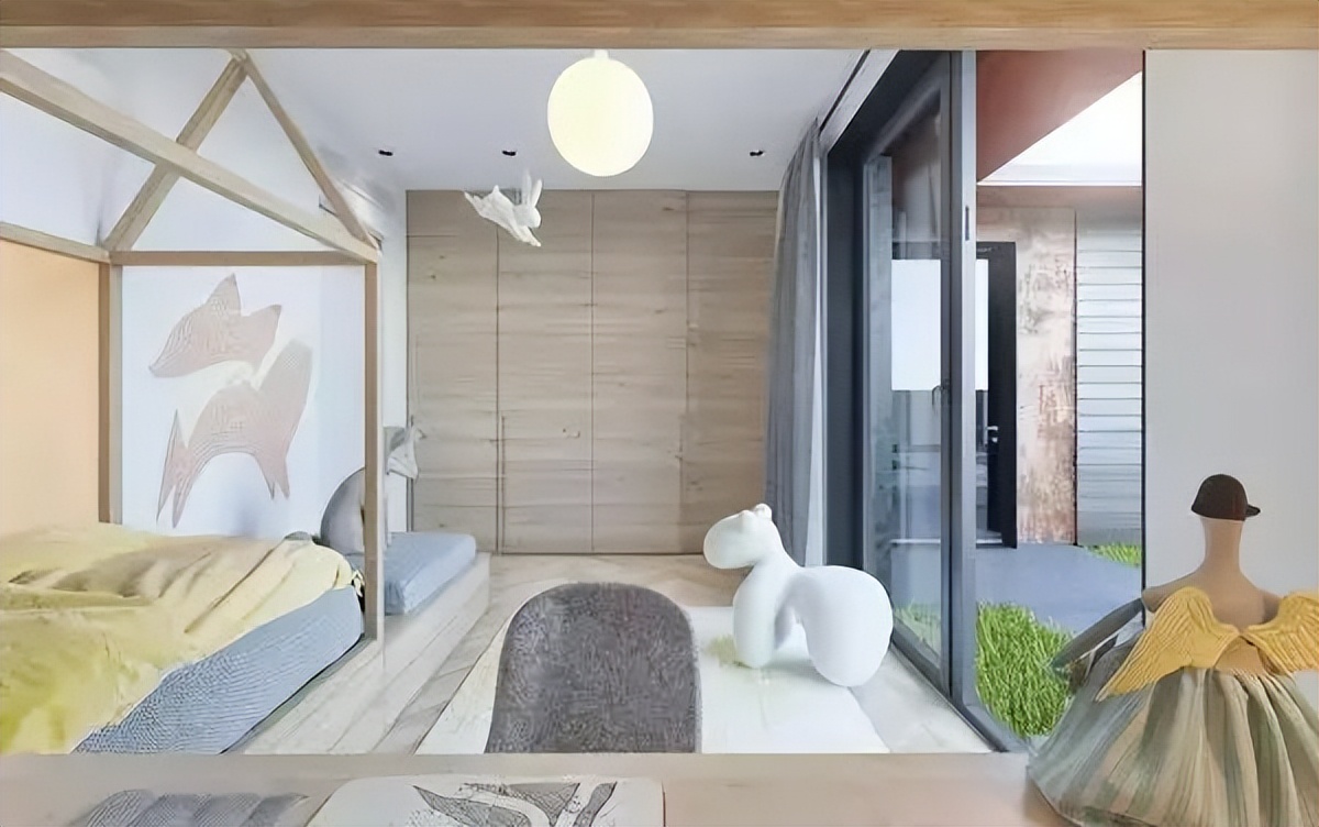 ♥ 1、在空间足够充足的情况下,除了休息区和学习区,打造一个孩童活动的场所,不一定是游戏区,也可以是休闲区;