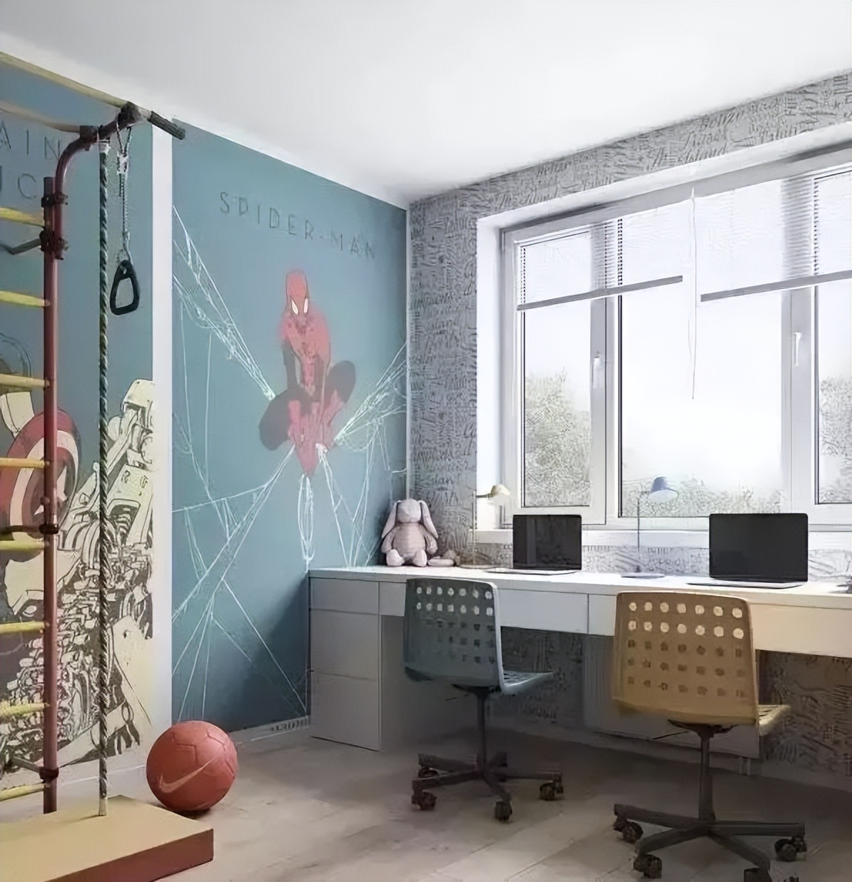 ♥ 3、在卧室一角增加了可供少年锻炼&游戏的器材。