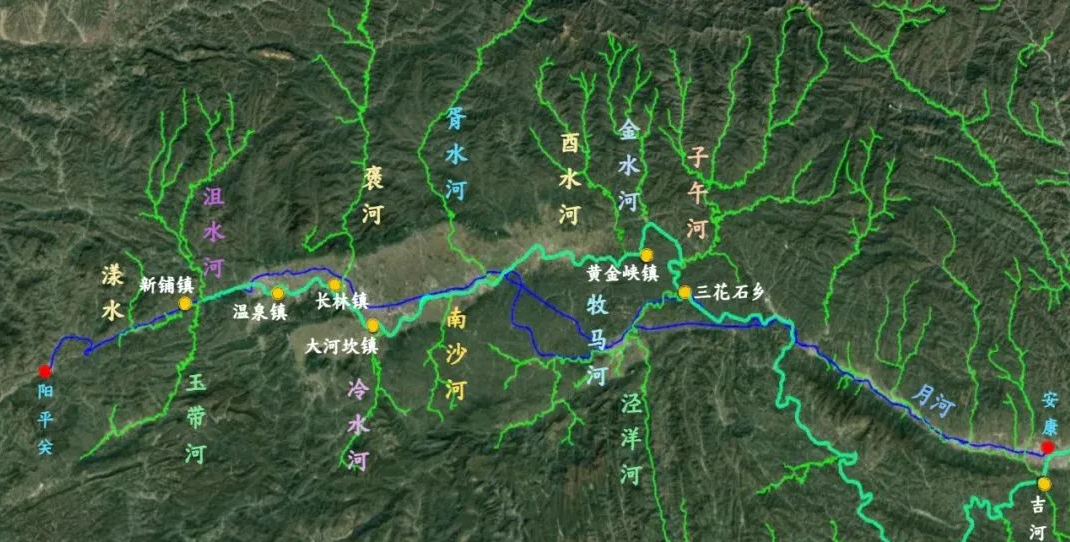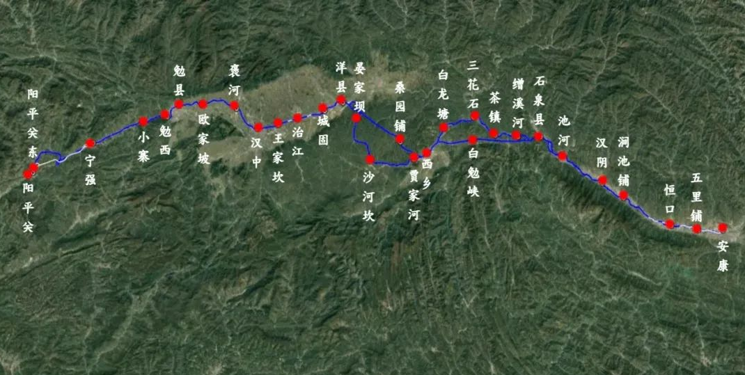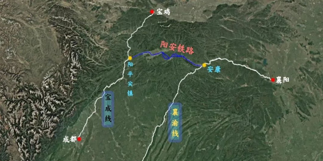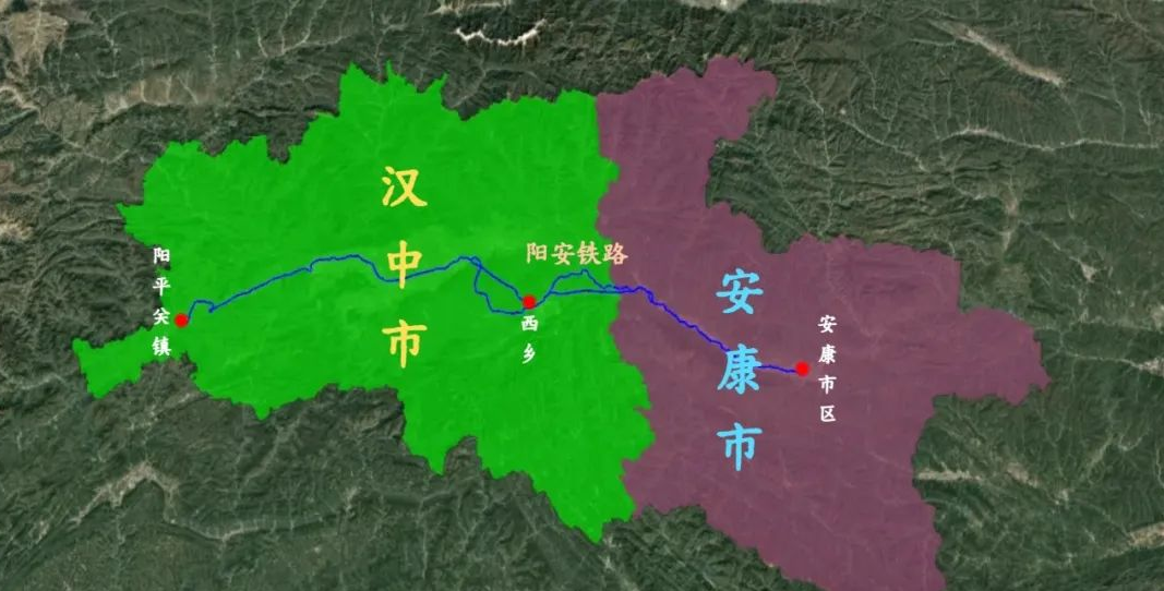 现在的阳安铁路有阳安铁路二线和阳安铁路一线的区分,在本文中着重描述的是一线,这条铁路从阳平关镇出发,经宁强,勉县,汉中市区,城固,西乡,石泉,汉阴到安康,全长351公里,这是秦巴山区至关重要的一条东西向通道。