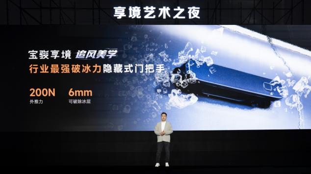 宝骏享境采用行业最强的破冰隐藏式门把手,充分解决了用户冬季出行痛点,其外推力高达200N,能轻松破除6mm厚冰层,确保用户在冰雪天气下也能轻松开启车门。