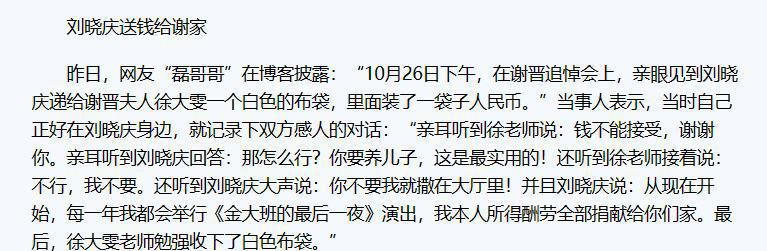 在谢晋的葬礼上,刘晓庆向谢晋的遗孀徐大雯提供了经济支持,并承诺将《金大班的最后一夜》的片酬给予他们。许多人认为她是在作秀,但16年过去了,刘晓庆用实际行动证明了她的承诺。这种持久性不仅体现了她的责任感,也反映了她对谢晋的深厚感情。