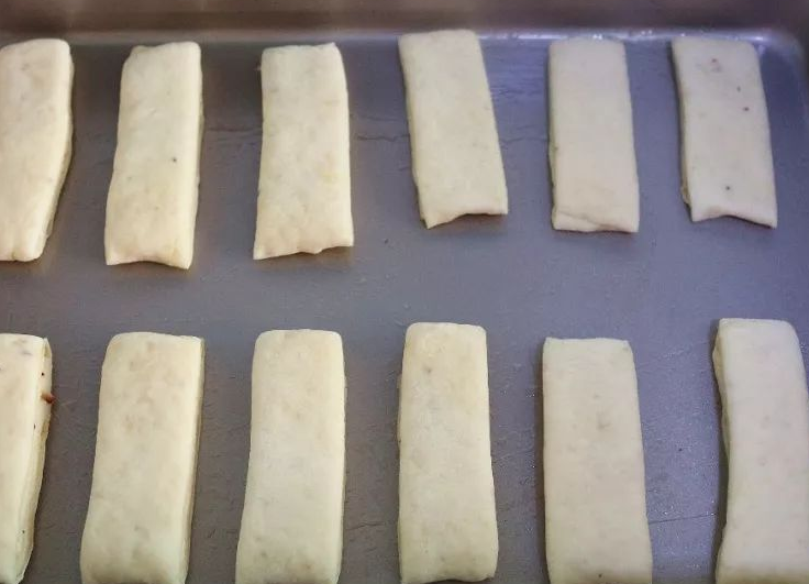 12把饼间隔地摆放在烤盘内,盖上保鲜膜,醒发至2倍大。