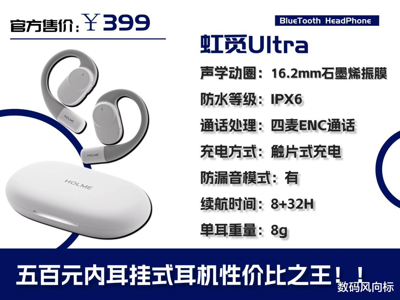 佩戴上很轻便,单耳才 8 克,长时间戴也没负担。流线型耳挂贴合耳朵,跑步、快走时不会滑落,稳定性很好。蓝牙 5.4 连接稳定,不容易断连;耳机还有独创的触片式充电,用着比传统触点方便多了,不用反复调整位置,充电效率也高。IPX6 的防水等级,出汗或小雨天使用都没问题;而且智能一拖二功能还能根据场景灵活切换设备,整体表现均衡,同价位里很难找到对手。
