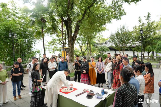 活动伊始,考察团一行参观了石鼓书院并举行笔会。唐健文副会长现场题写“缘”字,并赠予石鼓书院永久收藏。笔会期间,唐健文还展示了【中国古文字·百家姓】书法作品,生动讲解古文字演变历史,为座谈会营造了浓厚的文化氛围。