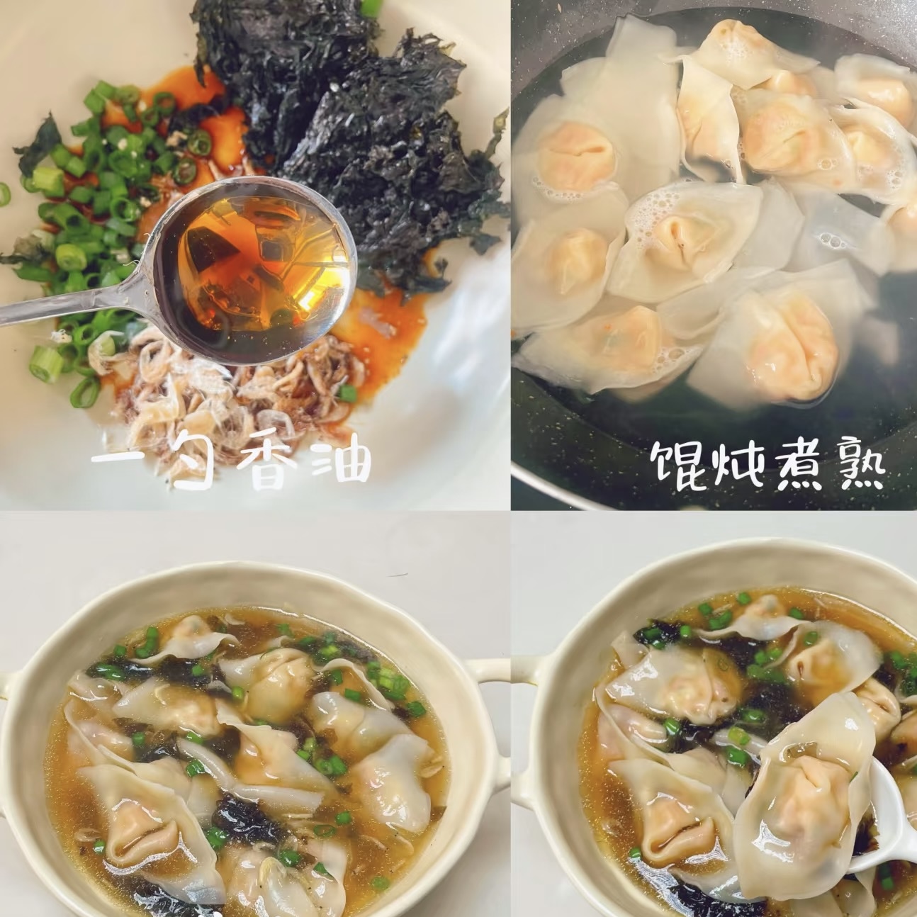 汤底是“隐藏大佬”。锅里水开,先扔半勺鸡精、花虾皮、紫菜、半勺盐、半勺白胡椒粉,像给汤“打粉底”,30秒鲜到“冒泡”。馄炖下锅要“温柔”,水保持“咕嘟咕嘟小花”状态,大火会“撕皮”。等它们浮起像“粉胖子”,再滚半碗冷水,让皮和馅“冷静拥抱”,二次沸腾就能出锅。