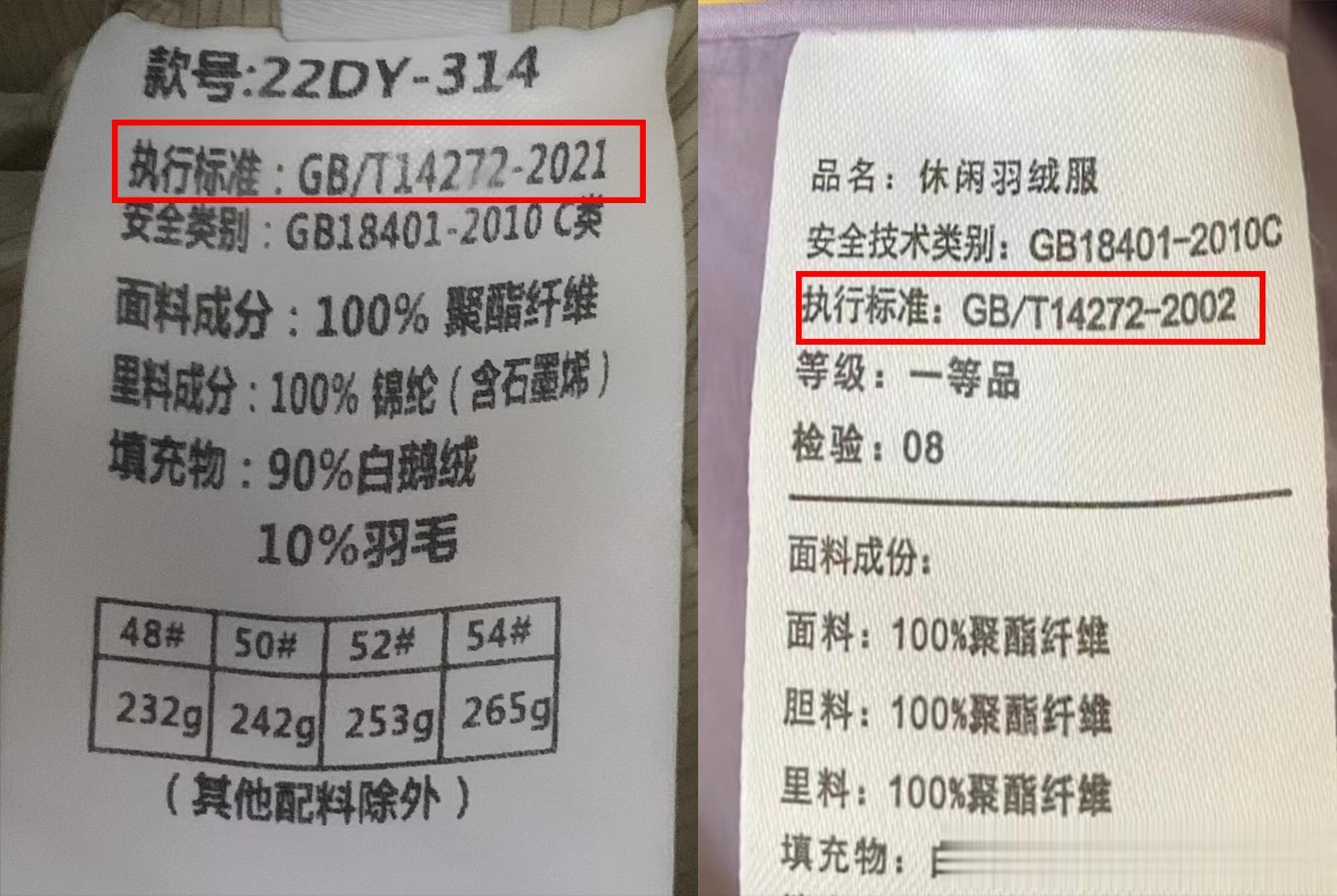 所以,我们在购买羽绒服时首先要看标签上的执行标准,对于那些没有标注执行标准,或者不是新国标的羽绒服要谨慎选择,这样的羽绒服在质量上可能存在问题。
