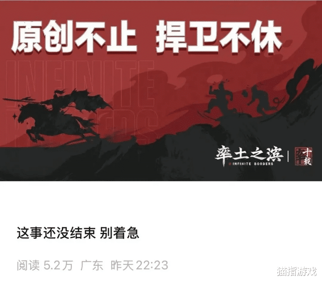 而《率土之滨》喊出的“原创不止,捍卫不休”口号,或许正是整个行业最想听到的声音。